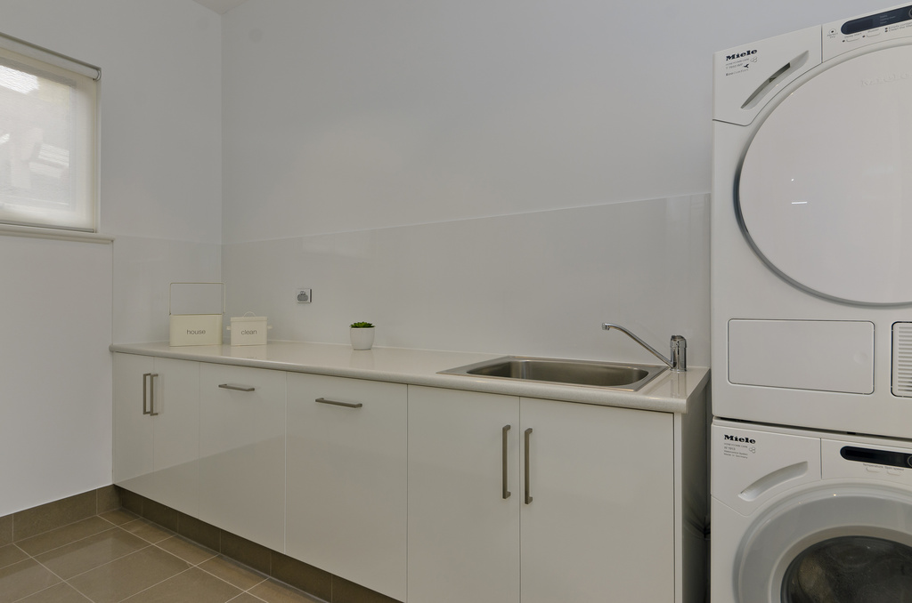 A chic ground floor powder room, including w/c and separate laundry with loads of storage and direct outside access completes the picture.